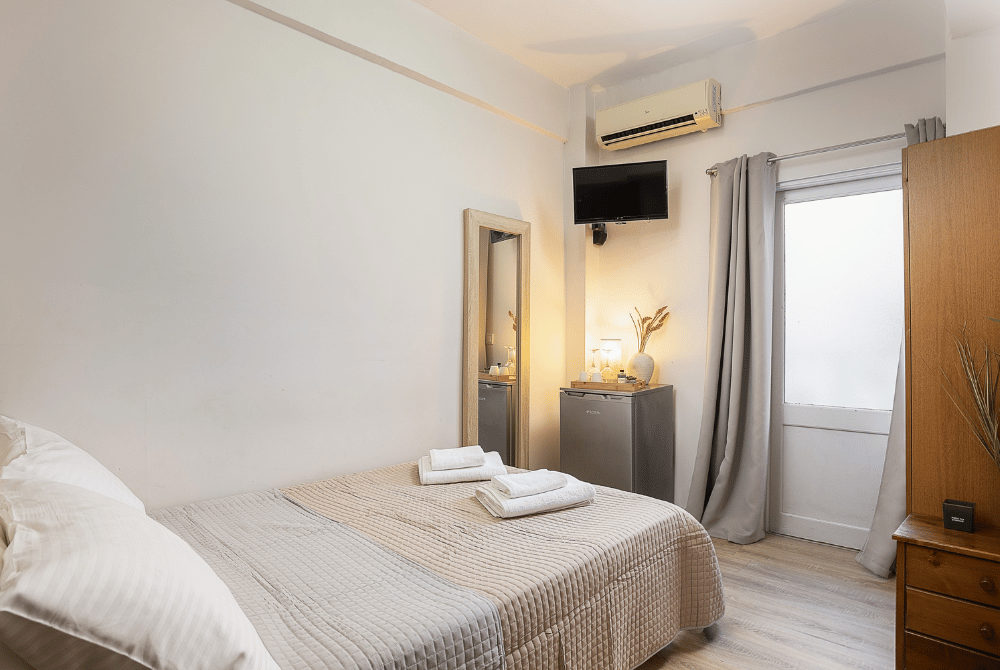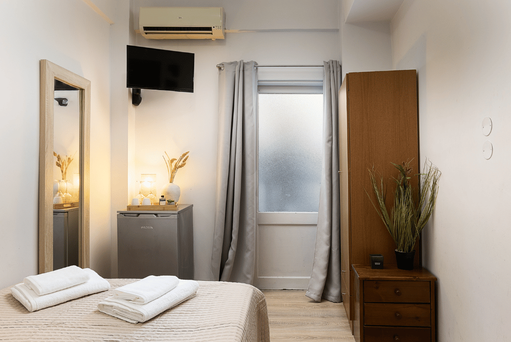 The room features a comfortable French bed, private basic bathroom, air conditioning, and free Wi-Fi, arranged to provide a peaceful and practical retreat after a day at the beach or exploring Chania. Room features: French bed (smaller double) Rear-facing (no sea views) Just metres from Nea Chora Beach Private bathroom Free Wi-Fi Air conditioning Ideal for couples, solo travelers, or budget short stays,