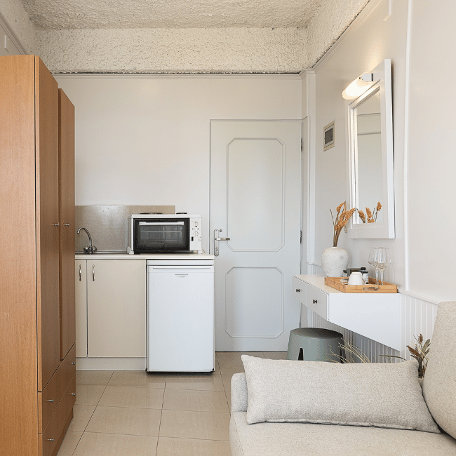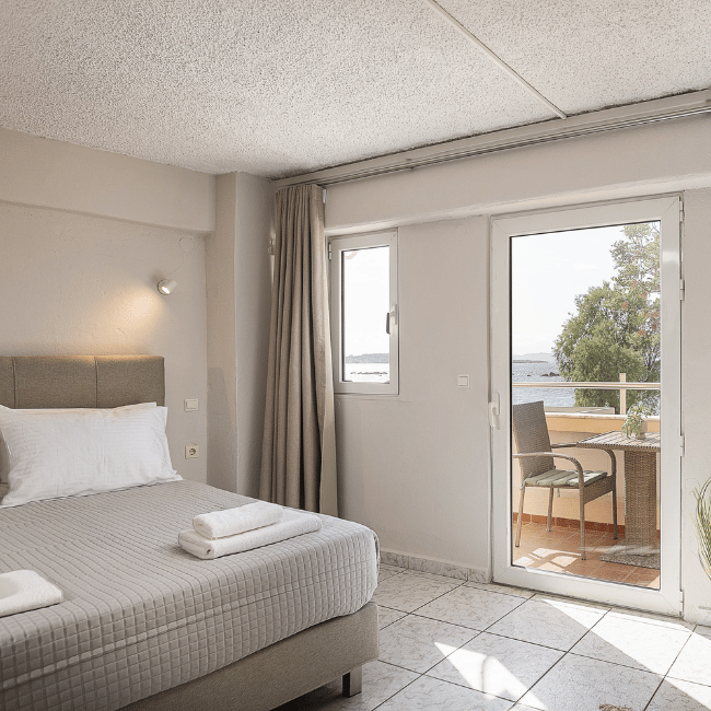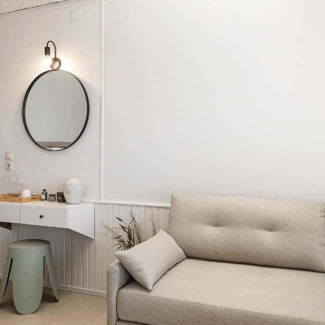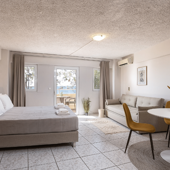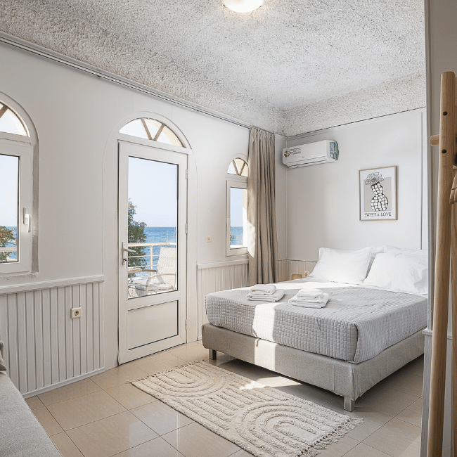 With its generous layout and breathtaking sea views, the Superior Room offers the ideal blend of space, style, and location just steps from Nea Chora Beach and Chania’s Old Town.