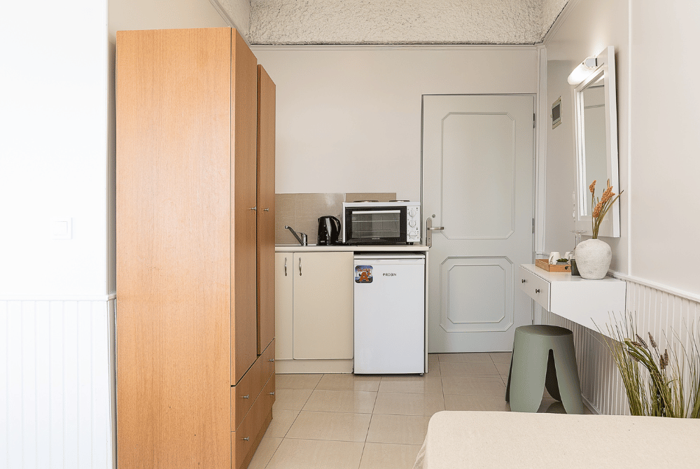 Whether you’re enjoying the sea breeze from your balcony or exploring the lively Nea Chora neighborhood just steps away, this room offers the perfect balance of comfort and location.